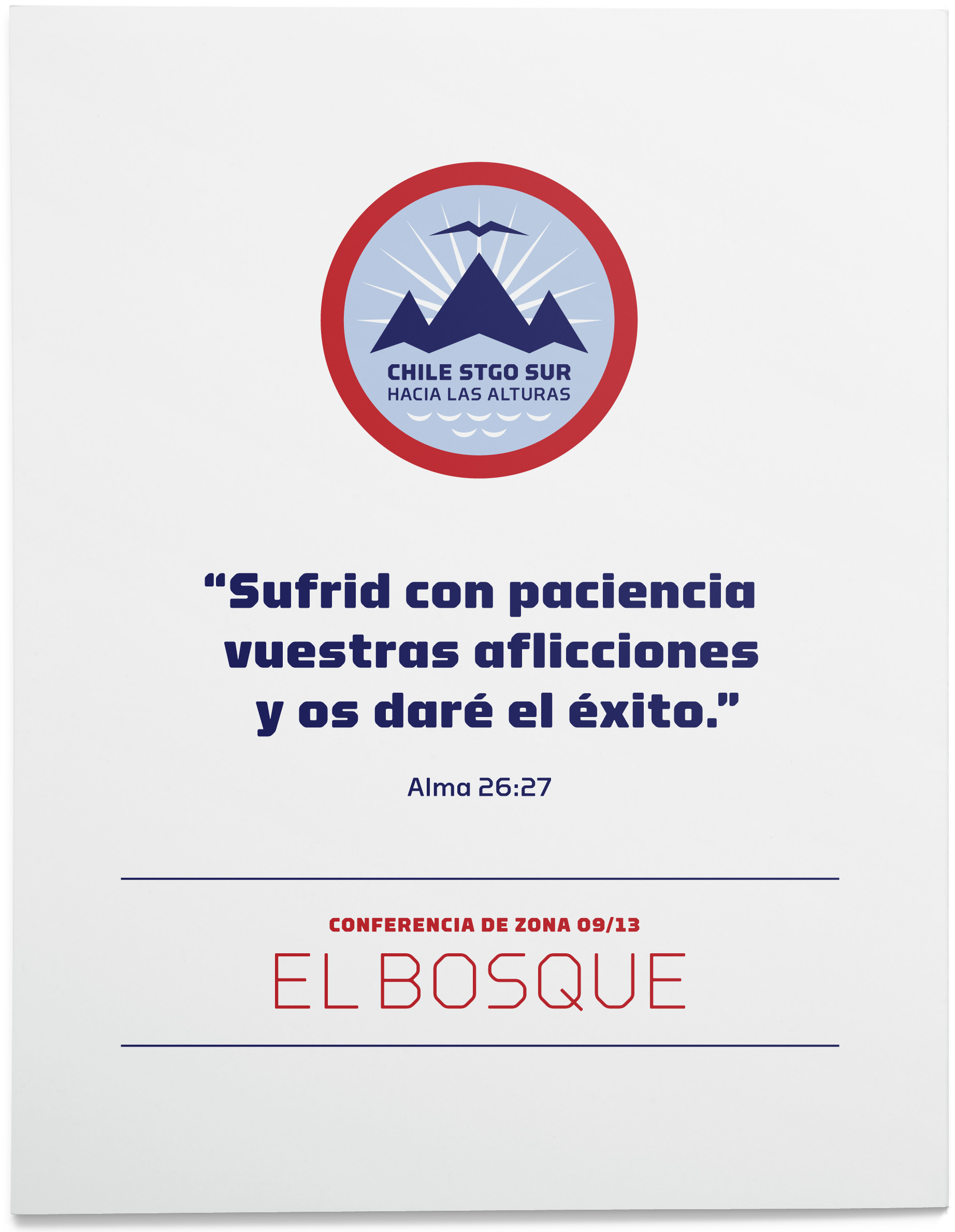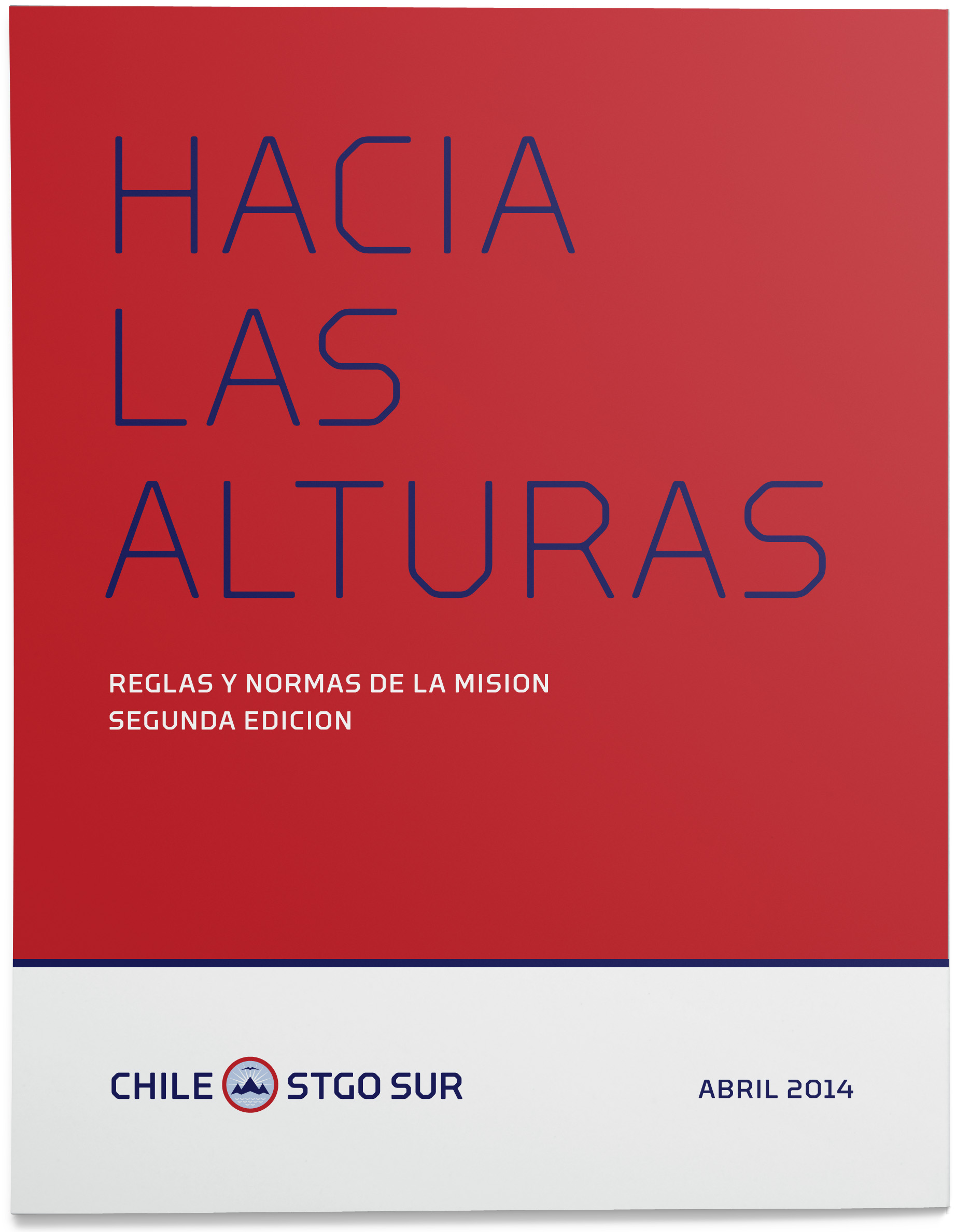 A mountaineer himself, the new mission president liked the idea of using the cordillera (Andean mountain range) in the logotype along with the legacy phrase “Hacia las alturas.” We decided that it would be important to represent those reaching for the mountain heights — the missionaries. The eagle from the former identity was too American, so we used a stylized version of a Chilean condor, the country’s national bird, instead. In addition to the obvious symbolism, there is an underlying reference to familiar Christian themes such as the Mountain of the Lord, the light of Christ, the descent of the Holy Spirit and the waters of baptism.