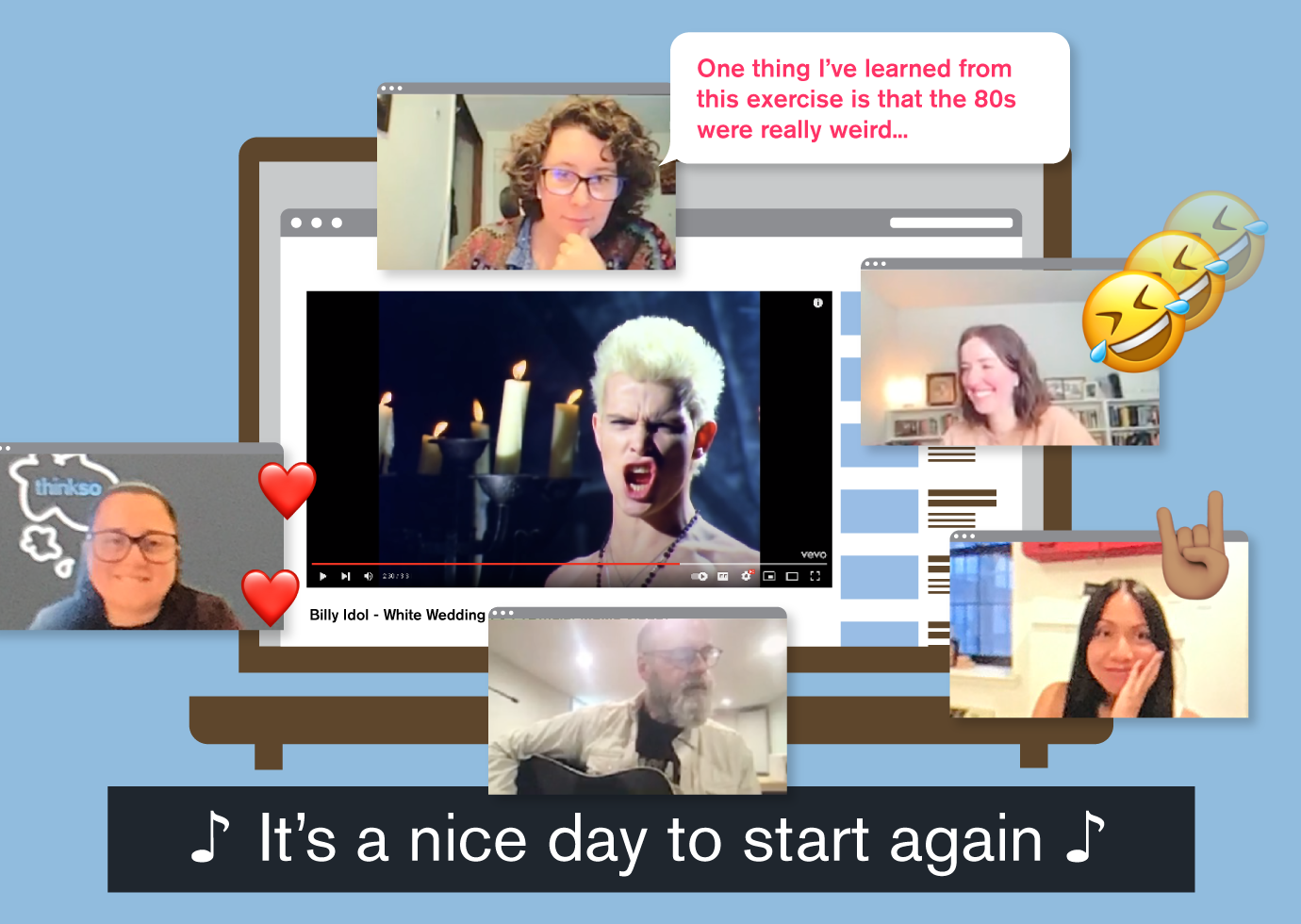 Too many people to just focus on one colleague per week? Pick something everyone can share on the same call. One week, we played the #1 hits from the day of each Thinksort’s birth. It turned into a fun desk chair jam session and inspired new playlists. It also made us realize how many generations we span and how awesome that is.