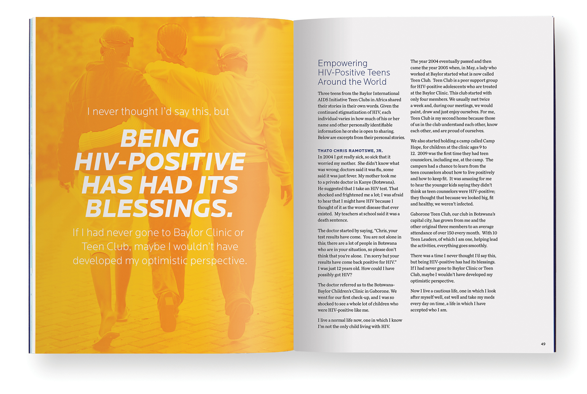 The effect can be compelling. The Baylor College of Medicine Community Services report we produced featured profiles of three teenage beneficiaries of BCM’s AIDs outreach programs. In their own words, they provide a powerful and personal validation of the program’s impact.