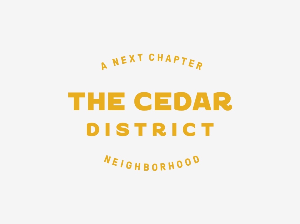 Neighborhood names are inspired by local geographic points of interest and are typeset in a custom-designed font inspired by vintage painted signs. Each neighborhood identity is treated in a signature color and features photography of its development.
