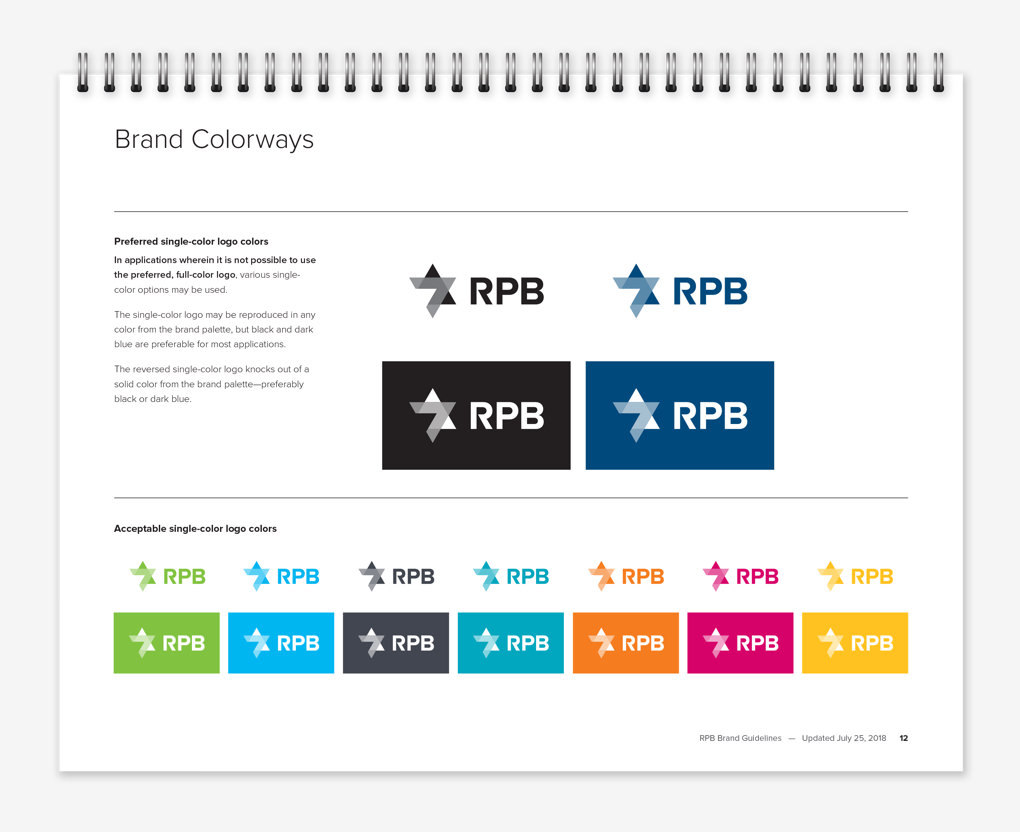 A simple brand guidelines document ensures that the new identity is used consistently and properly by RPB and its consultants.