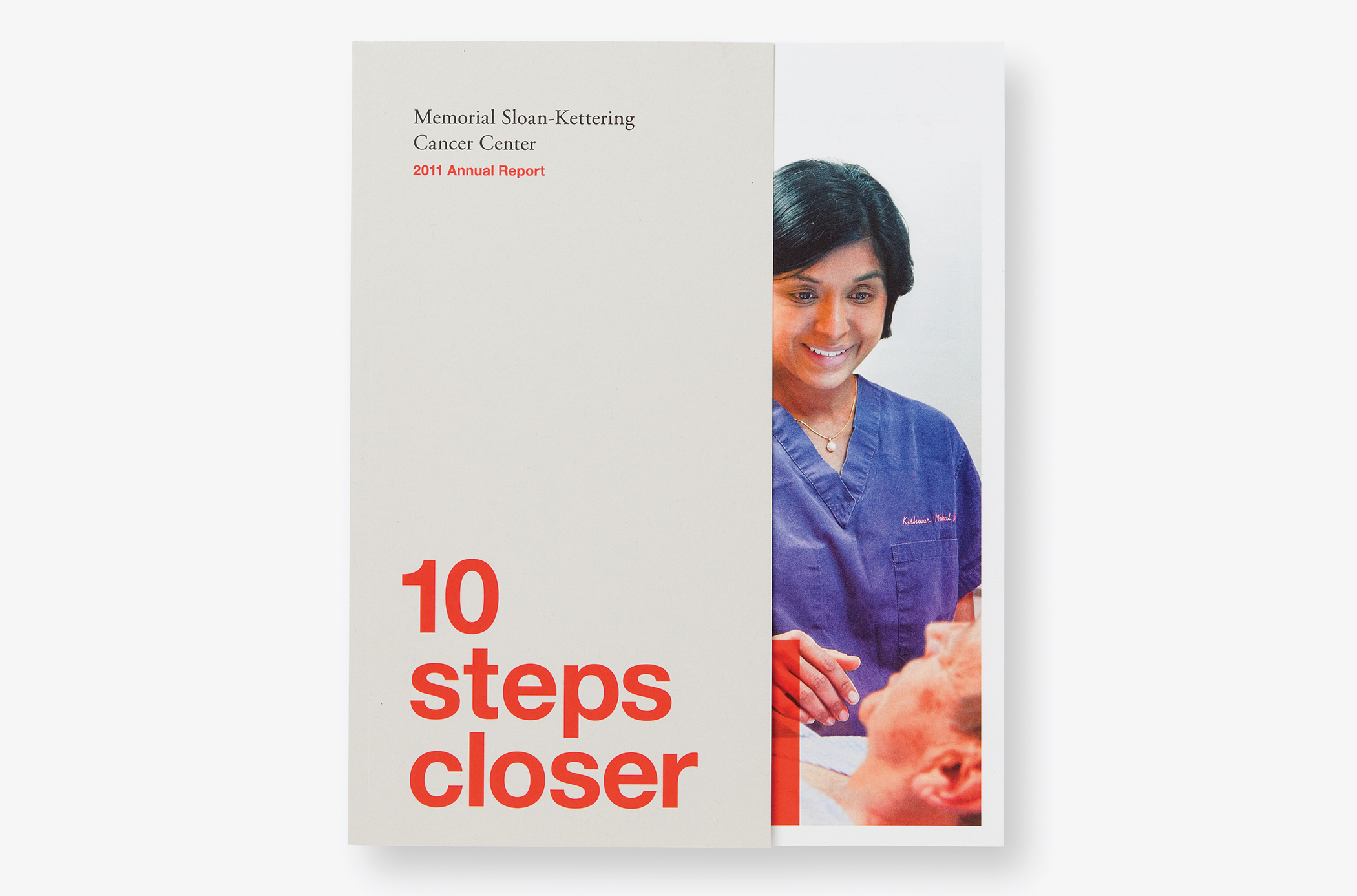 As the country’s leading cancer center, Memorial Sloan-Kettering looked to depart from a tradition of expensive, cumbersome annual reports. Instead, they gave Thinkso a set of concisely written highlights for their 2011 report and tasked us to design and create an editorial framework that would break the mold. We called the book 10 steps closer—as in closer to a better understanding, a more effective treatment, or even a cure. Each step was paired with artful, collage style, imagery that saved money and time by repurposing existing photography. This novel approach traded the big-budget report for a high-impact, responsibly designed book that really turned heads.